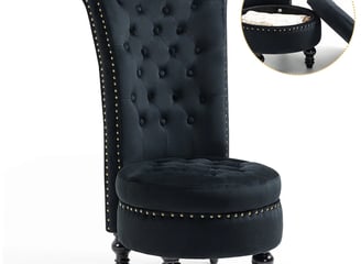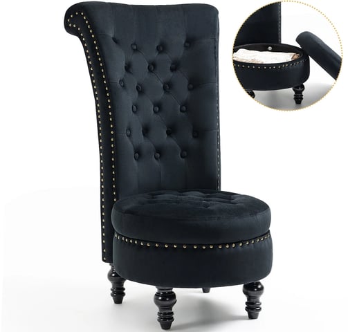 Every lair needs a throne. This high backed velvet chair comes in different colors. It also has a secret of it's own, hidden storage under the seat cushion.